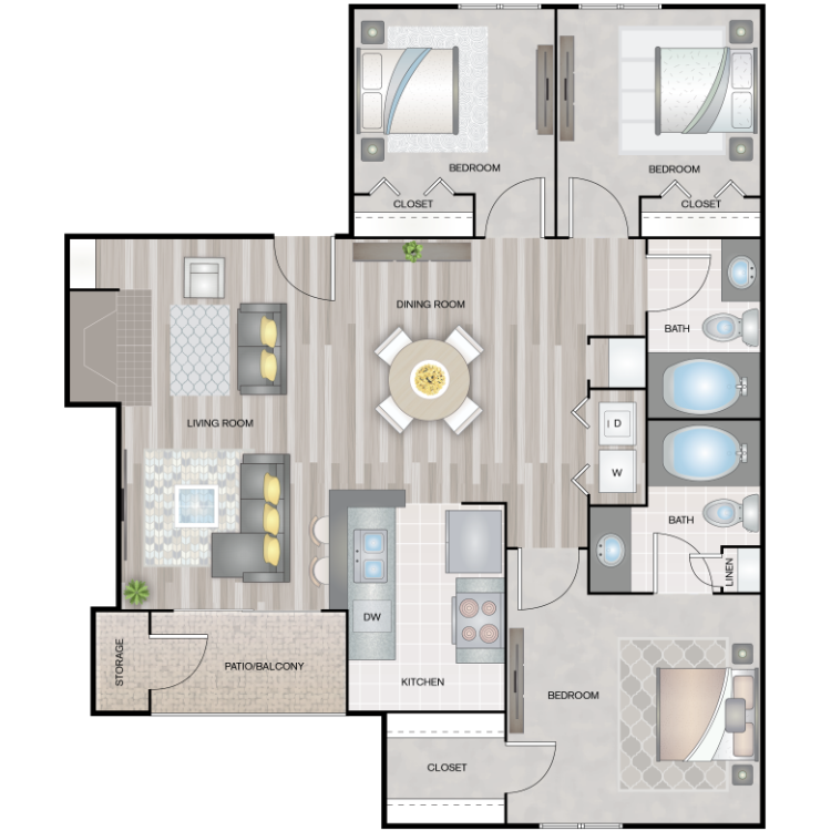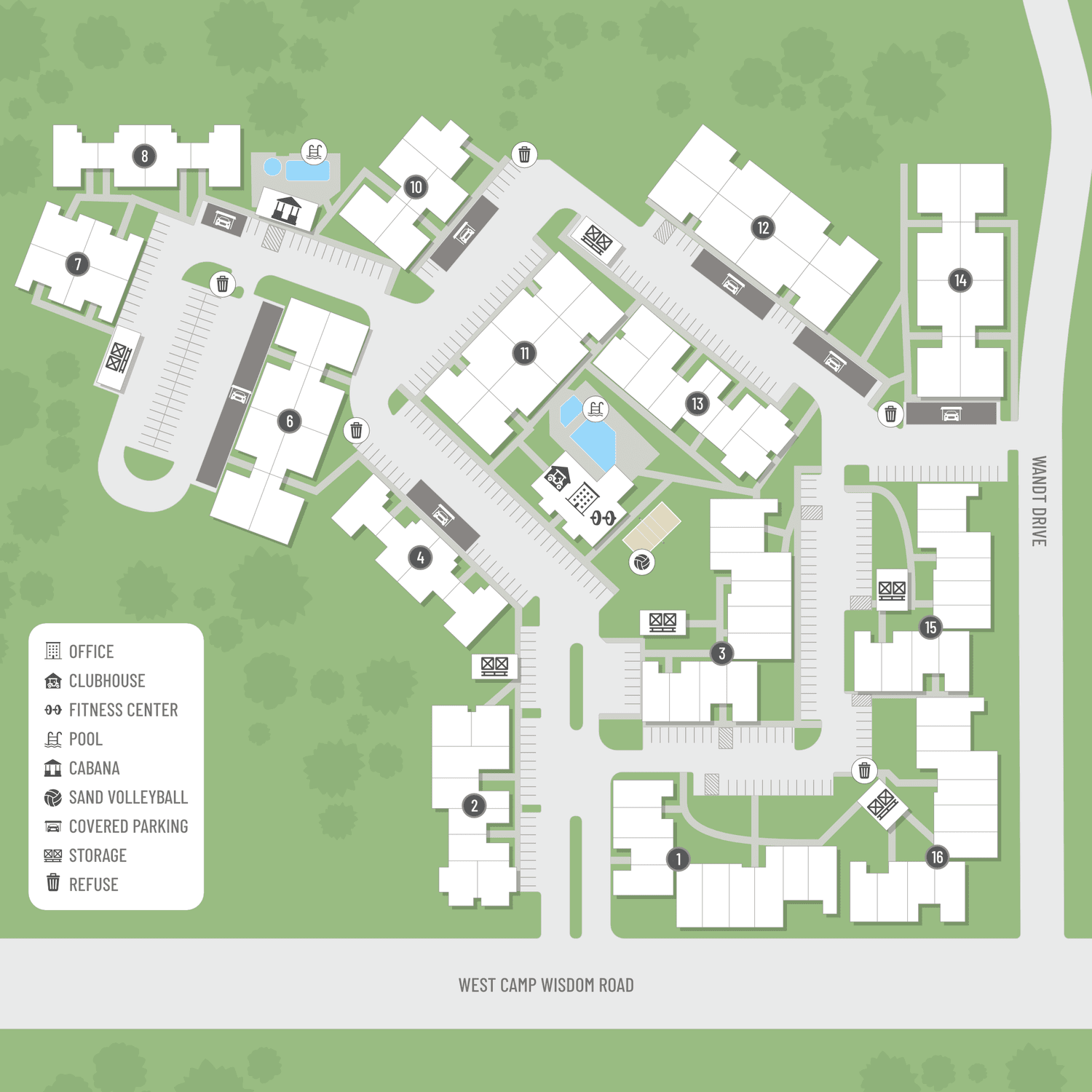 Select a floor plan or bedroom count to view those units on the overhead view on the site map. If you need assistance finding a unit in a specific location please call us at 972-780-4767 TTY: 711.
